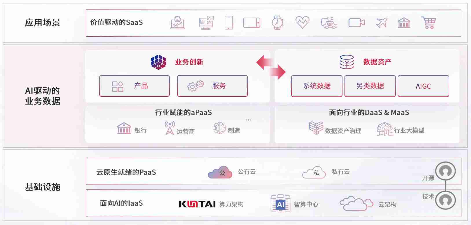 数字时代,,围绕企业数字化转型的关键要素,,,,尊龙集团数码开创性的提出数云融合战略和技术体系框架,,,,着力在云原生、、数字原生、、、、AI原生和信创产业上架构产品和服务能力,,为处在不同数字化转型阶段的快消零售、、汽车、、、金融、、、、医疗、、、政企、、教育、、运营商等行业客户提供泛在的敏捷IT能力和融合的数据驱动能力,,,构建跨界融合创新的数字业务场景和新业务模式,,助力企业级客户建立面向未来的核心能力和竞争优势,,全面推动社会的数字化、、、智能化转型升级。。